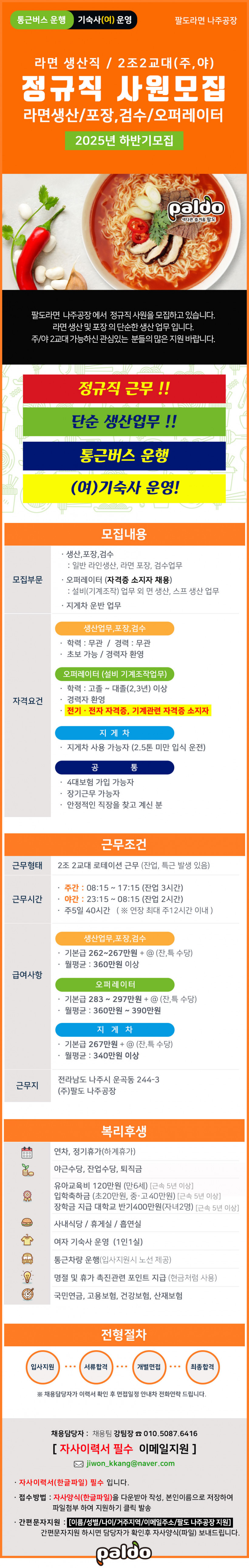 팔도 나주공장 생산직모집 20251216